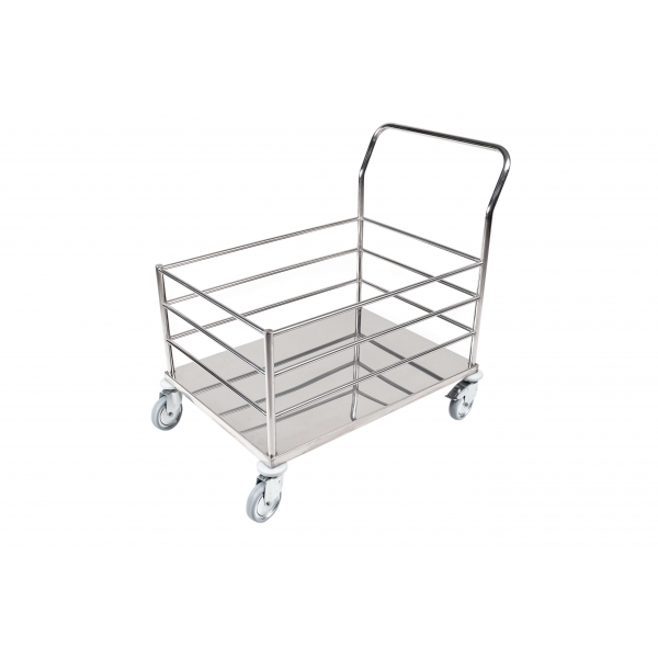 - Trolley for dirty and clean linen and waste transport art. 300710 made of AISI 304 stainless steel dim. 900x650x650/1000 Hmm, with higher side rail wheels fi 125 mm.