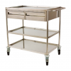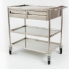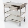 - Stainless steel trolley art. 310002 dim. 80x50x15 cm is made of stainless steel AISI 304. Trolley with two shelves, two-drawers, pus handle, four wheels fi 125mm, two with brake, four buffer wheels