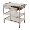 - Stainless steel trolley art. 310001 dim. 80x50x15 cm, is made of stainless steel AISI 304. Trolley with three shelves, two-drawers, pus handle, four wheels fi 125mm, two with brake, four buffer wheels